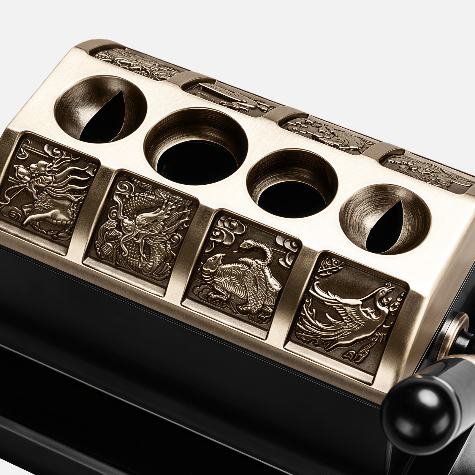 This Eight Mythical Beasts Tabletop Cigar Cutter with Multi-Cut Options combines symbolic power with precision craftsmanship, offering a refined and collectible accessory for discerning cigar enthusiasts.
