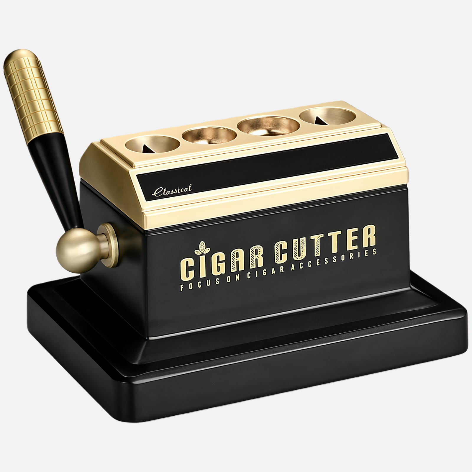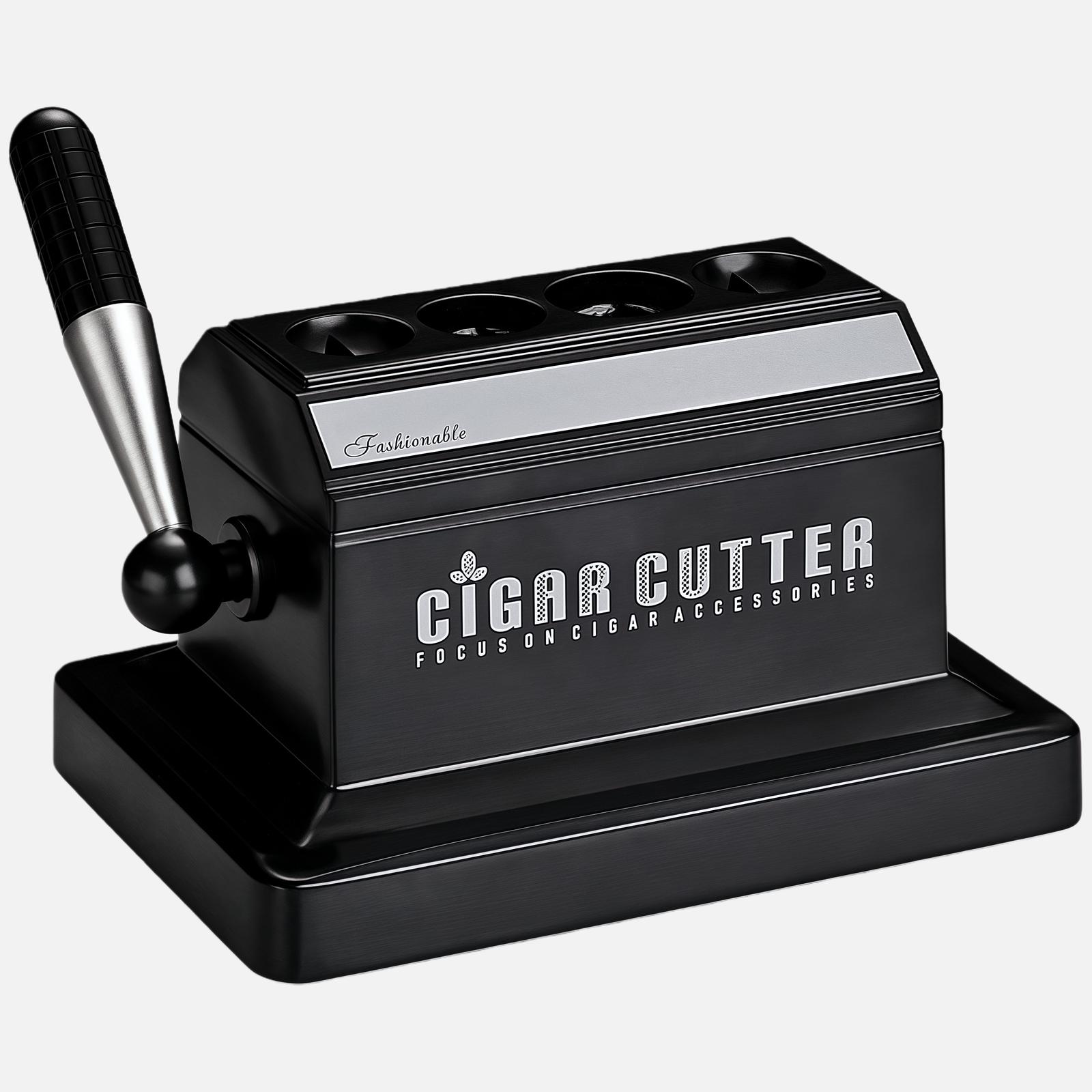 Equipped with multiple cutting options — including small and large ring gauges, V-cut, and four-cut configurations — it accommodates a wide range of cigar sizes and personal preferences. The solid tabletop construction ensures stability and effortless operation, while serving as a striking centerpiece in any cigar lounge or private collection.
