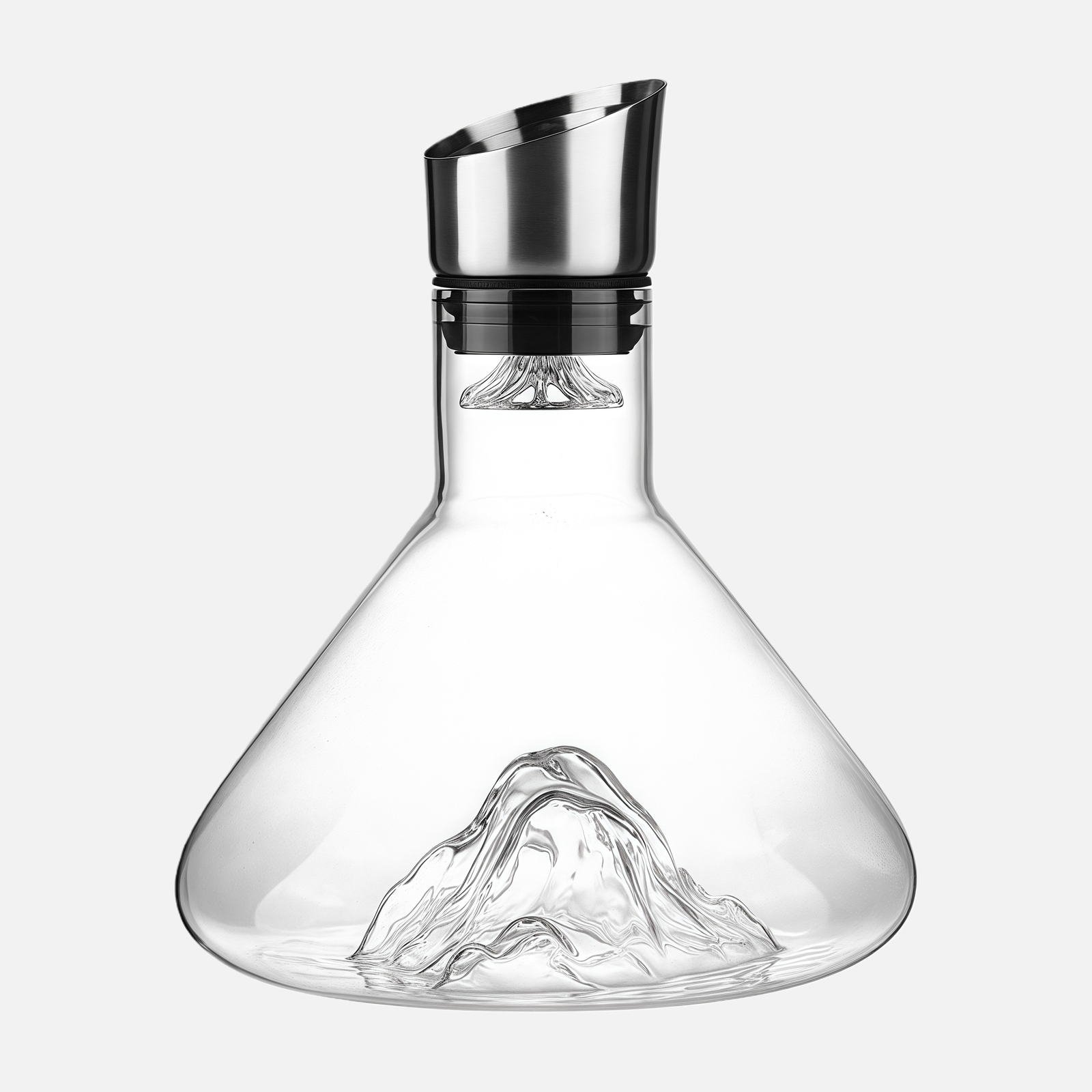 Inspired by the majesty of natural landscapes, this crystal decanter transforms your wine experience into a visual and sensory ritual. At the base of the decanter rises a sculpted glass mountain, creating a dramatic centerpiece while enhancing the aeration process.