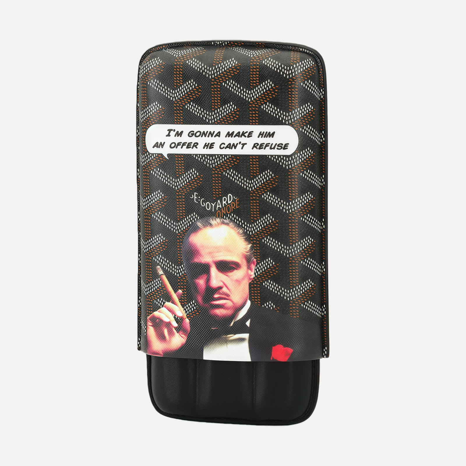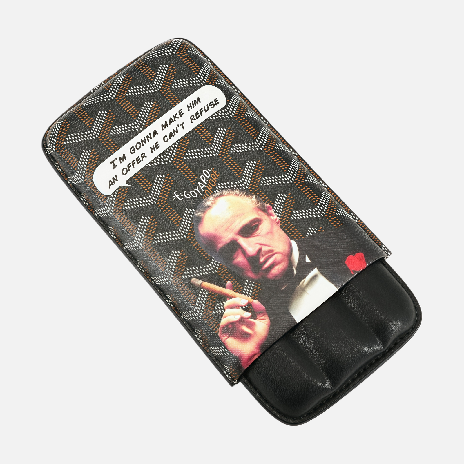 This “The Godfather” Print 3-Cigar Portable Leather Case draws inspiration from iconic cinematic culture, capturing strength, elegance, and ritual in a refined everyday accessory.