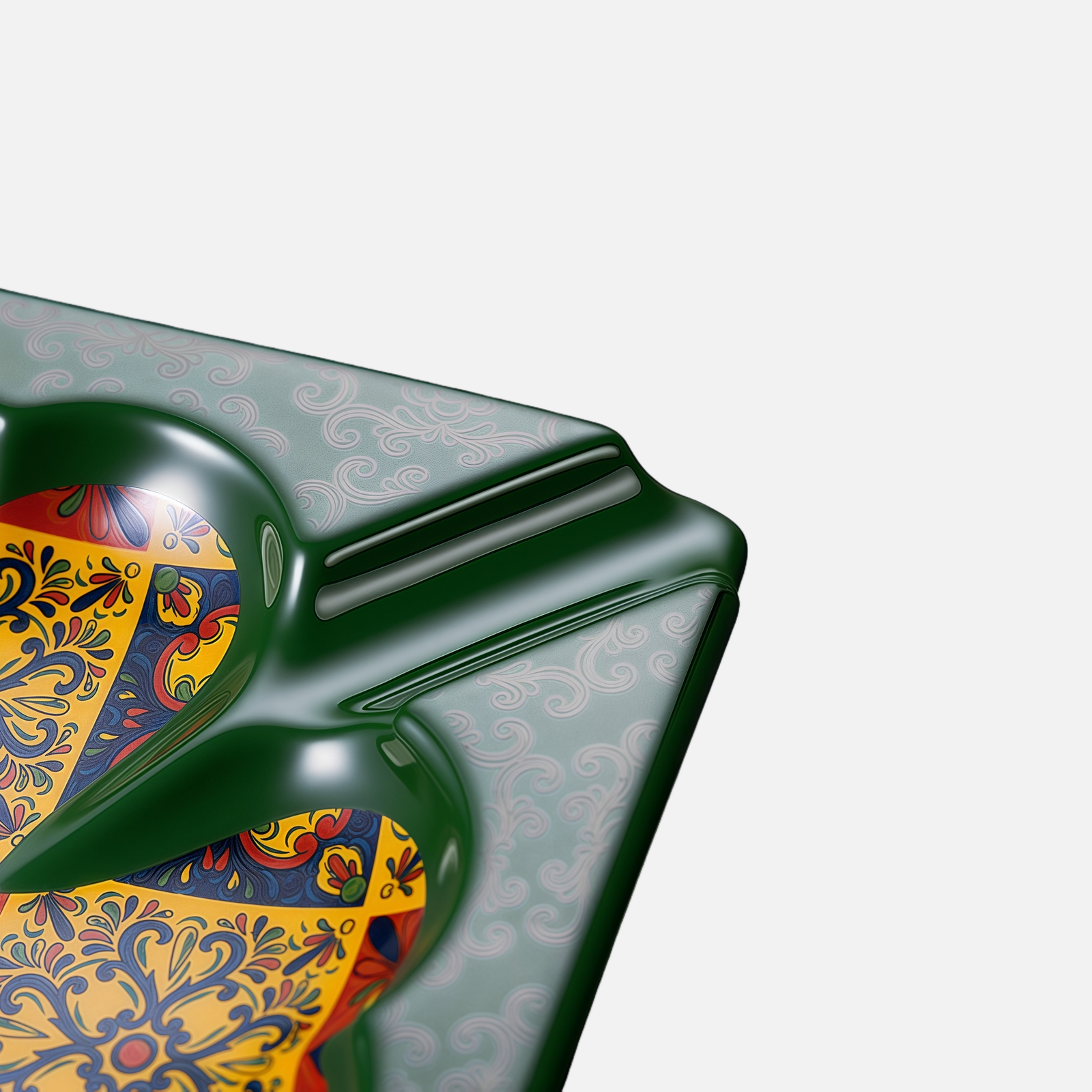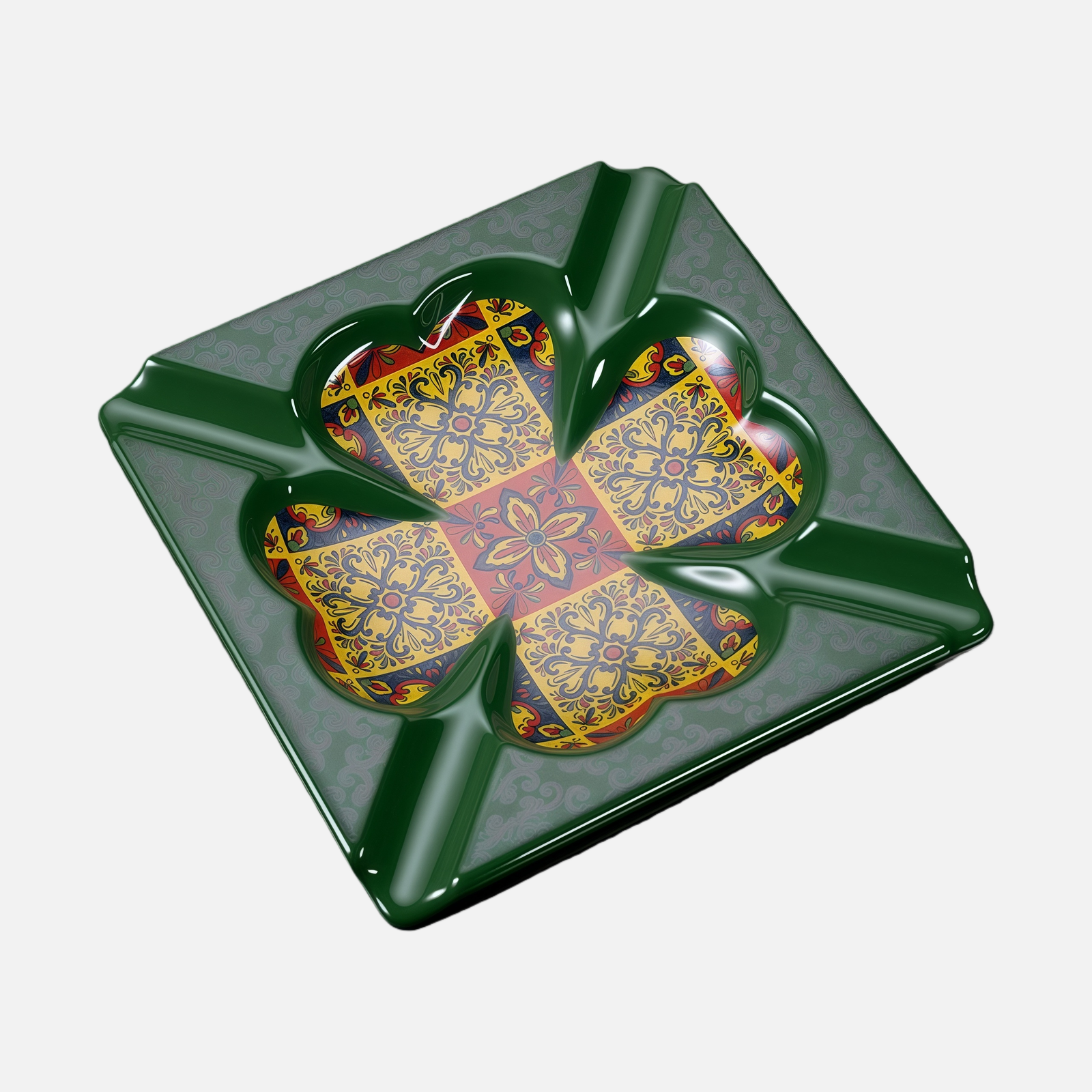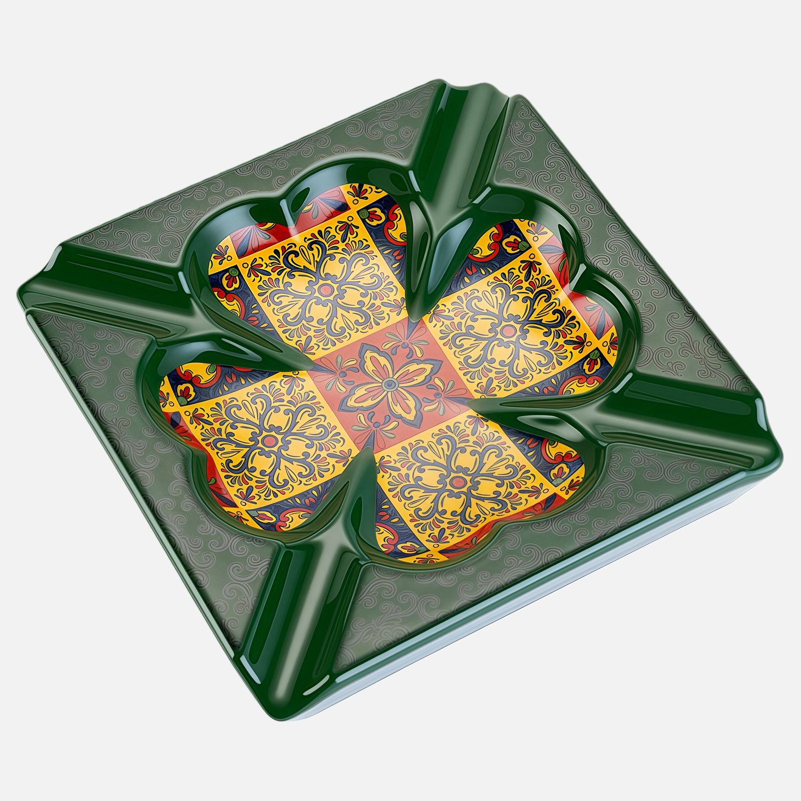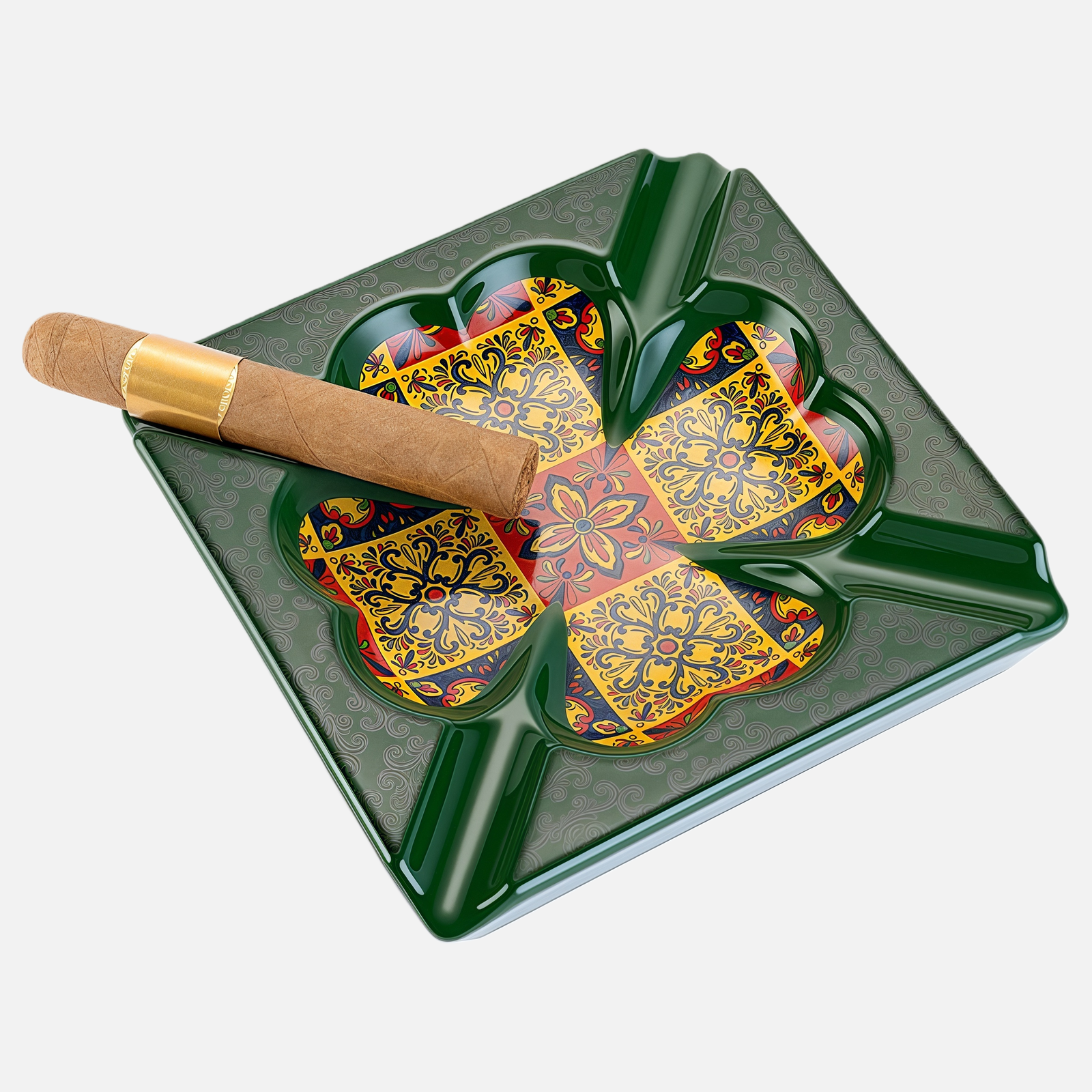 Luxury Ceramic Cigar Ashtray – Vintage Pattern with 4 Cigar Slots
