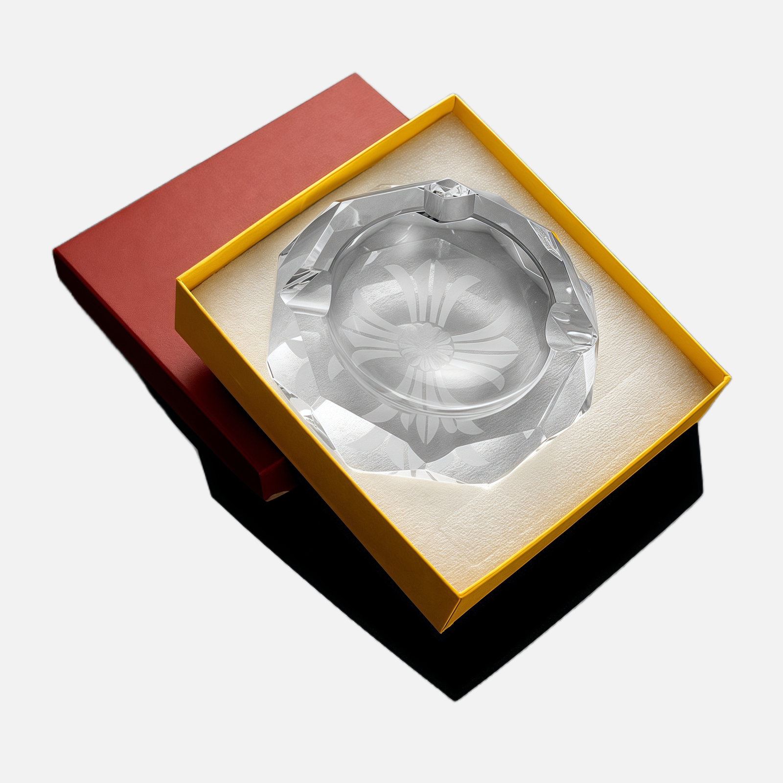 This German-Designed Cut Glass Large Opening Cigar Ashtray with Four Slots, Gift Box Included combines precision German engineering with elegant glass craftsmanship, making it ideal for desktop collection and high-end gifting.