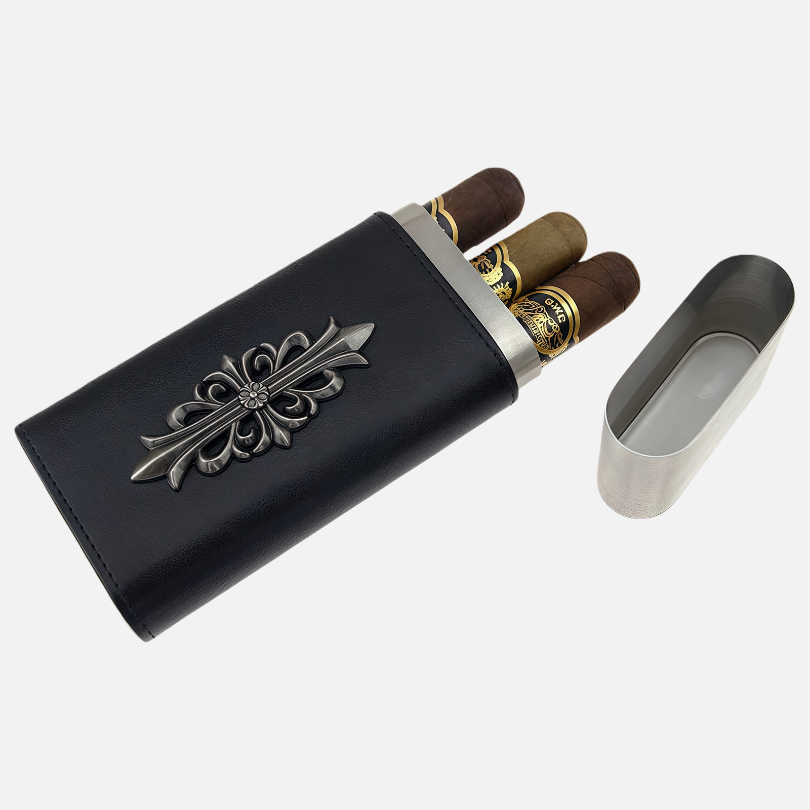 The interior structure securely protects cigars from pressure and wear, balancing functionality with striking visual appeal. Whether carried for business travel, social occasions, or private moments of indulgence, it stands as a confident statement of personal style.