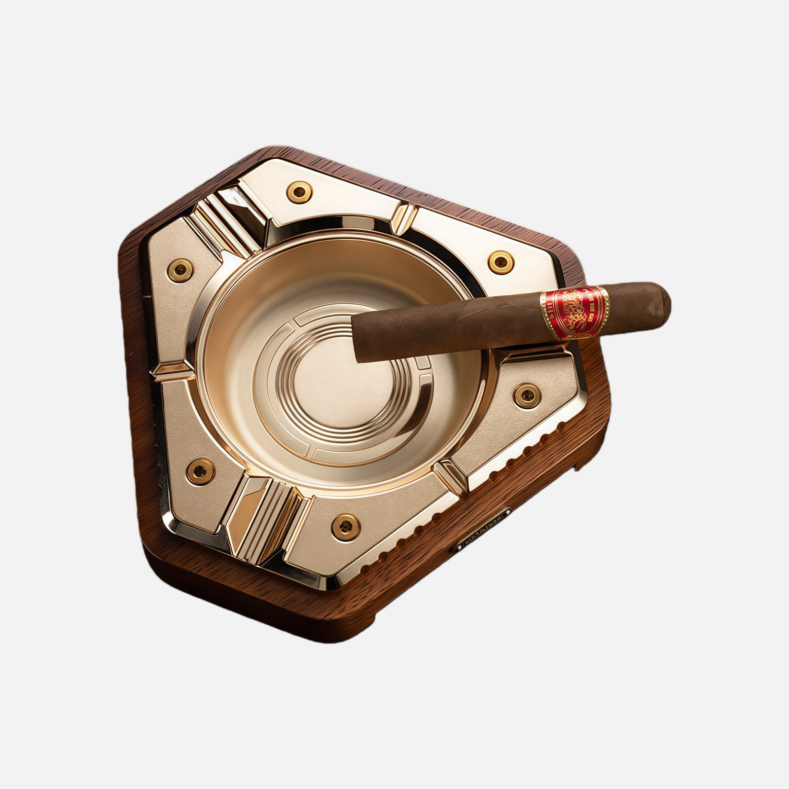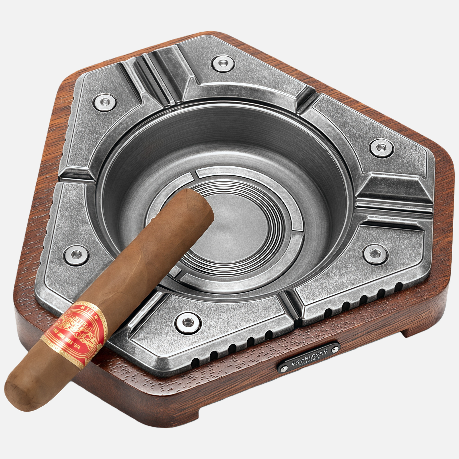 Luxury Metal & Wood Cigar Ashtray – Heavy Duty Premium Desk Design
