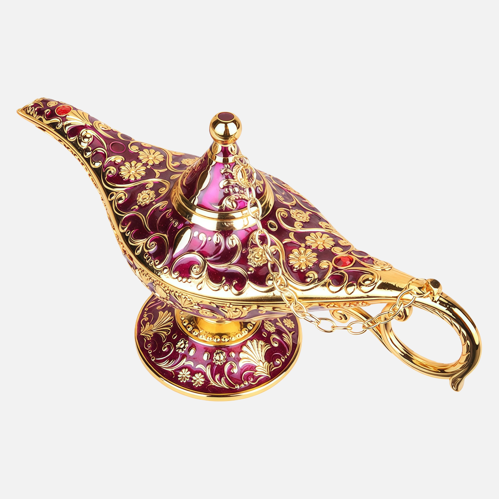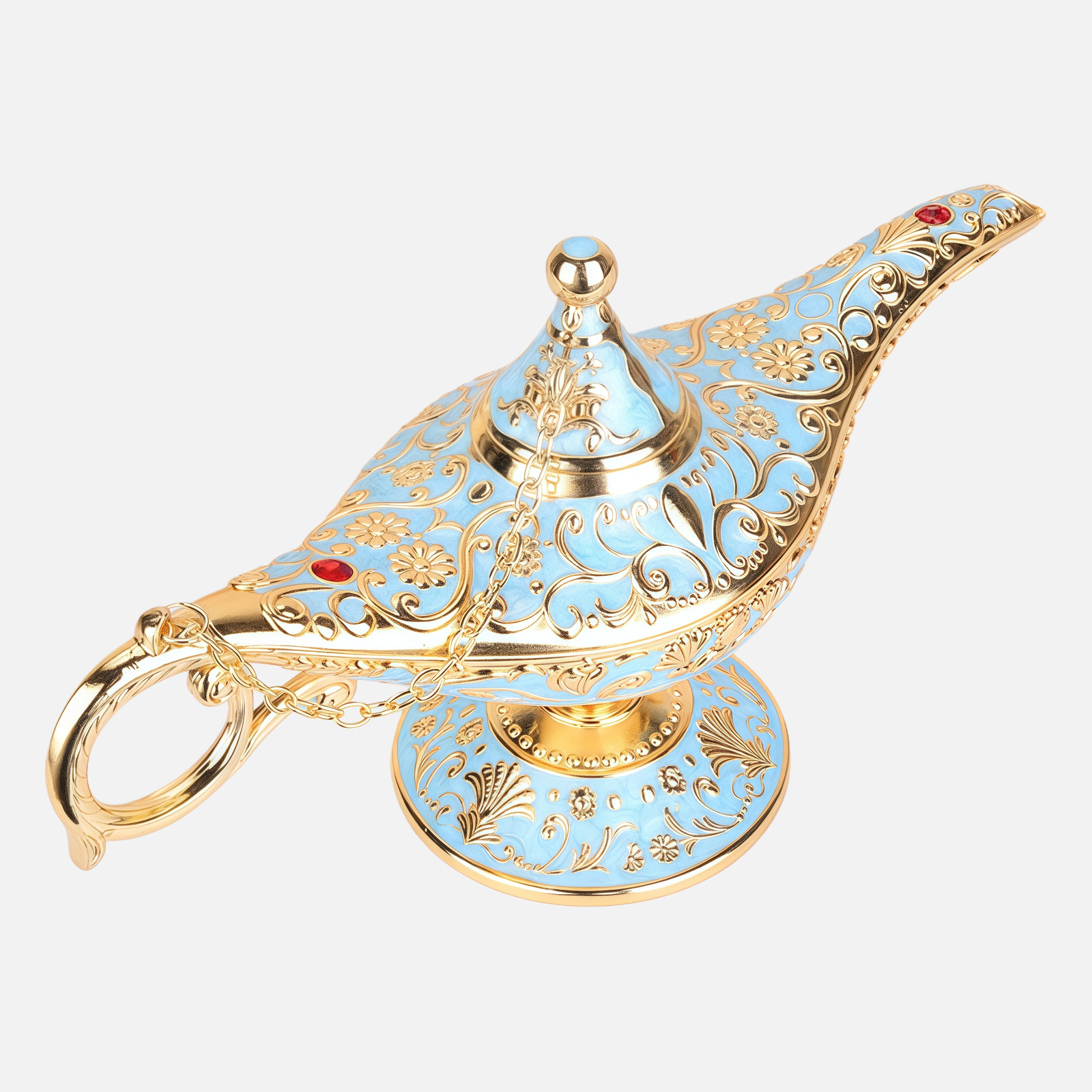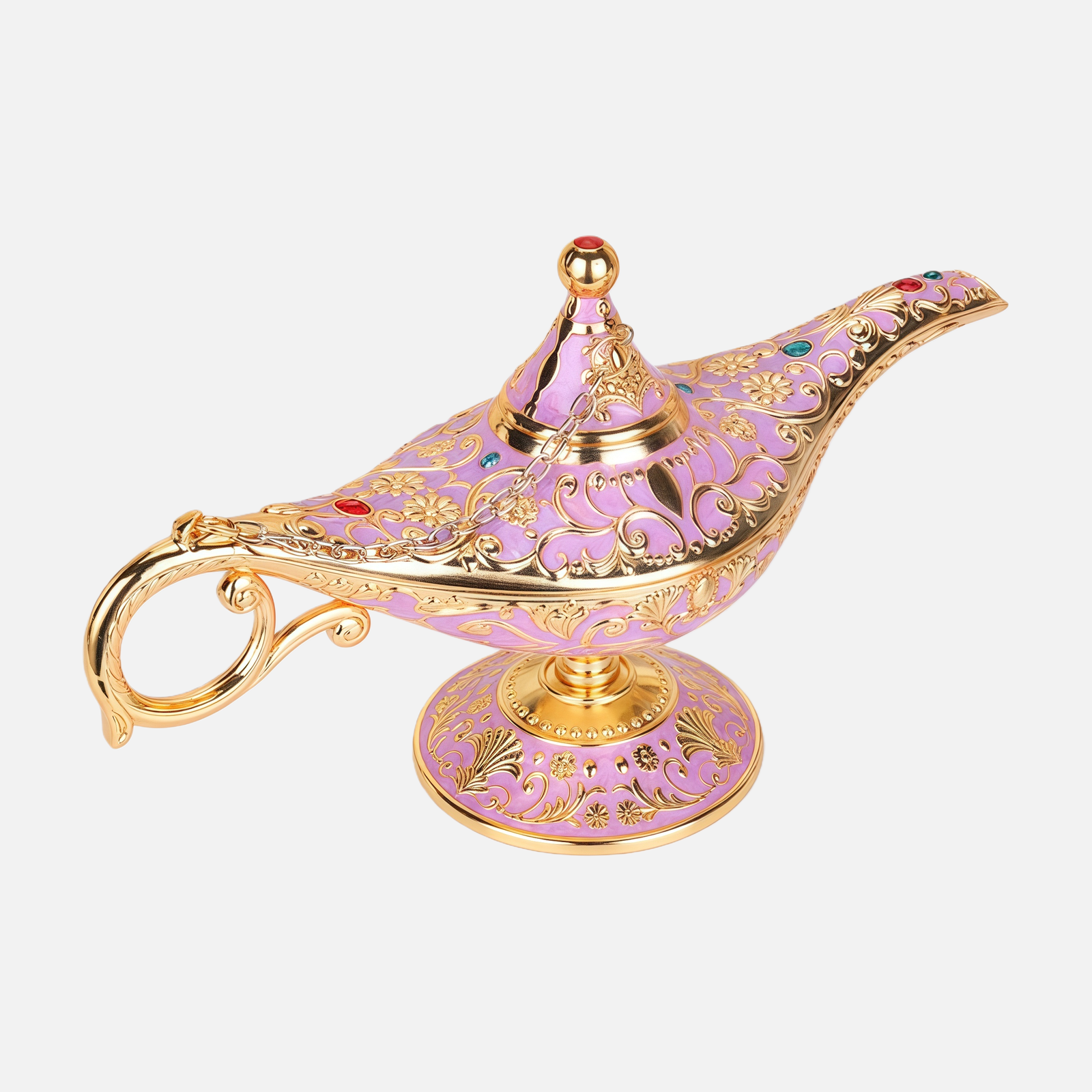 Drawing from the iconic silhouette of the legendary Aladdin’s lamp, the design features elegant proportions, sculptural curves, and intricate European-style engravings. The combination of alloy and pewter craftsmanship creates a rich, substantial feel, with a soft metallic sheen that catches light beautifully without excess shine.