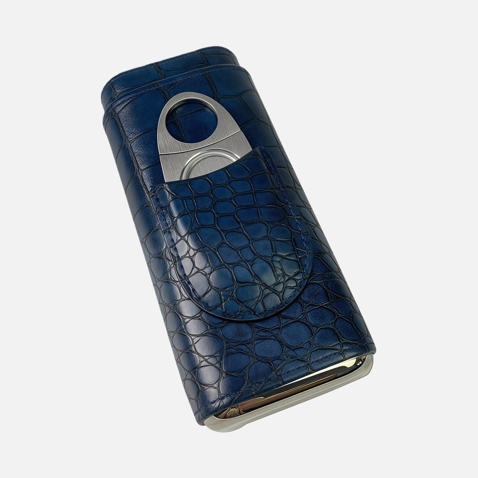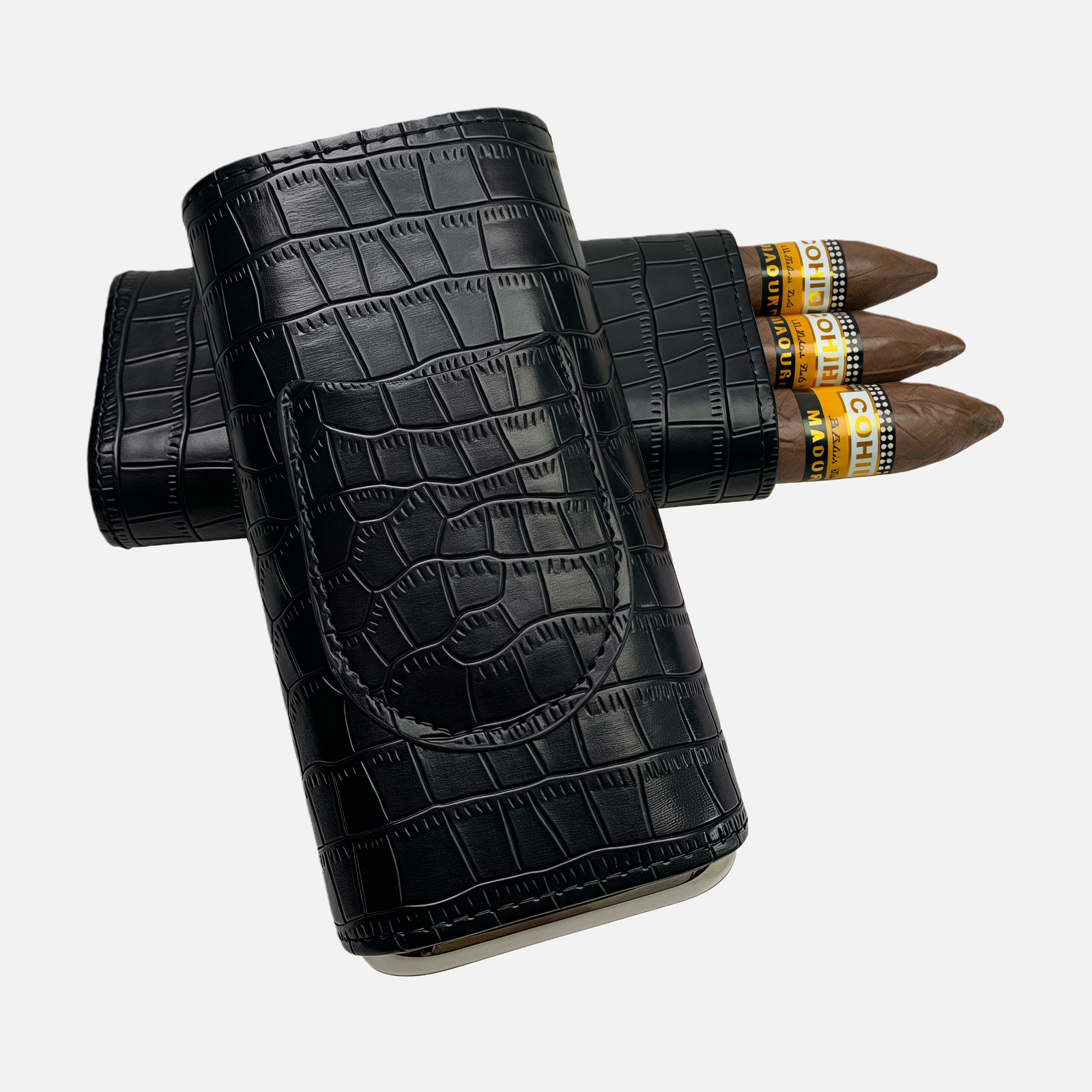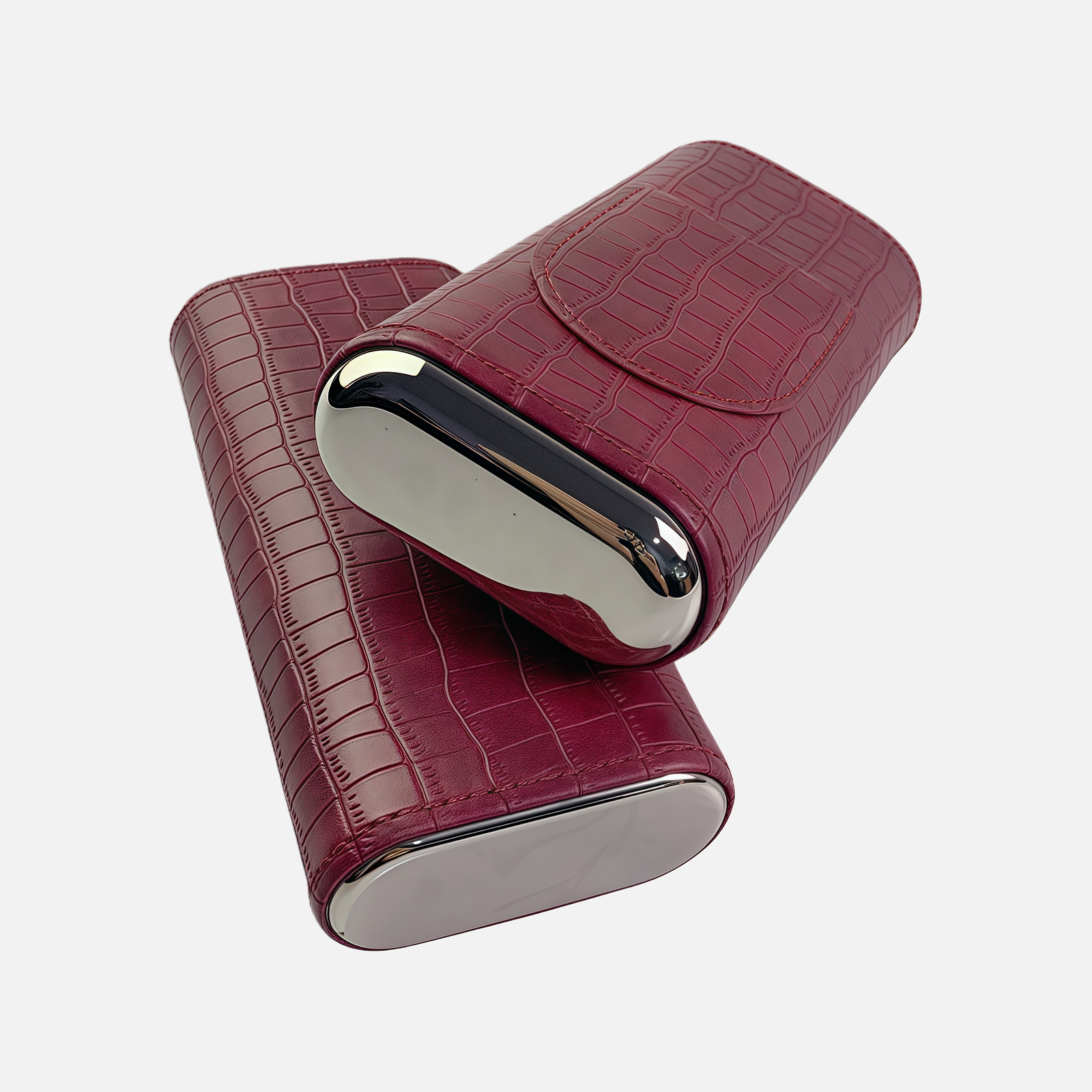 Wrapped in premium leather, the exterior delivers a smooth, sophisticated feel, while reinforced metal ends provide durability and structural strength. The interior is lined with natural cedarwood, known for its humidity-regulating properties and subtle aroma, helping to protect cigars from dryness, pests, and environmental fluctuations.
